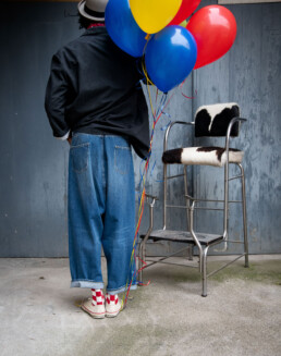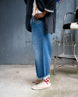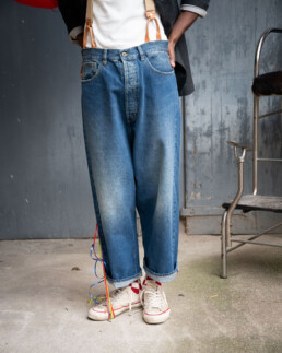 One of PeppinoPeppino’s most recognisable silhouettes, the Rodeo Jean takes its cue from the roomy pants worn by clowns at American rodeos – hence the name. Think of it as a relaxed harem-inspired jean: a dropped crotch with a gentle taper from the knee down, creating a bold, playful shape that’s far easier to style than you might expect.